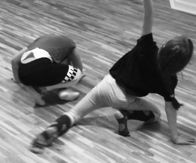 Du brauchst bequeme Sportbekleidung, Socken und etwas zu trinken.